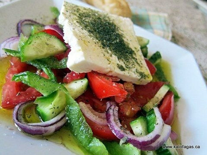 Greek salad or horiatikh salad is the most popular salad in the greek cuisine generally made with pieces of tomatoes, cucumber, onion,...